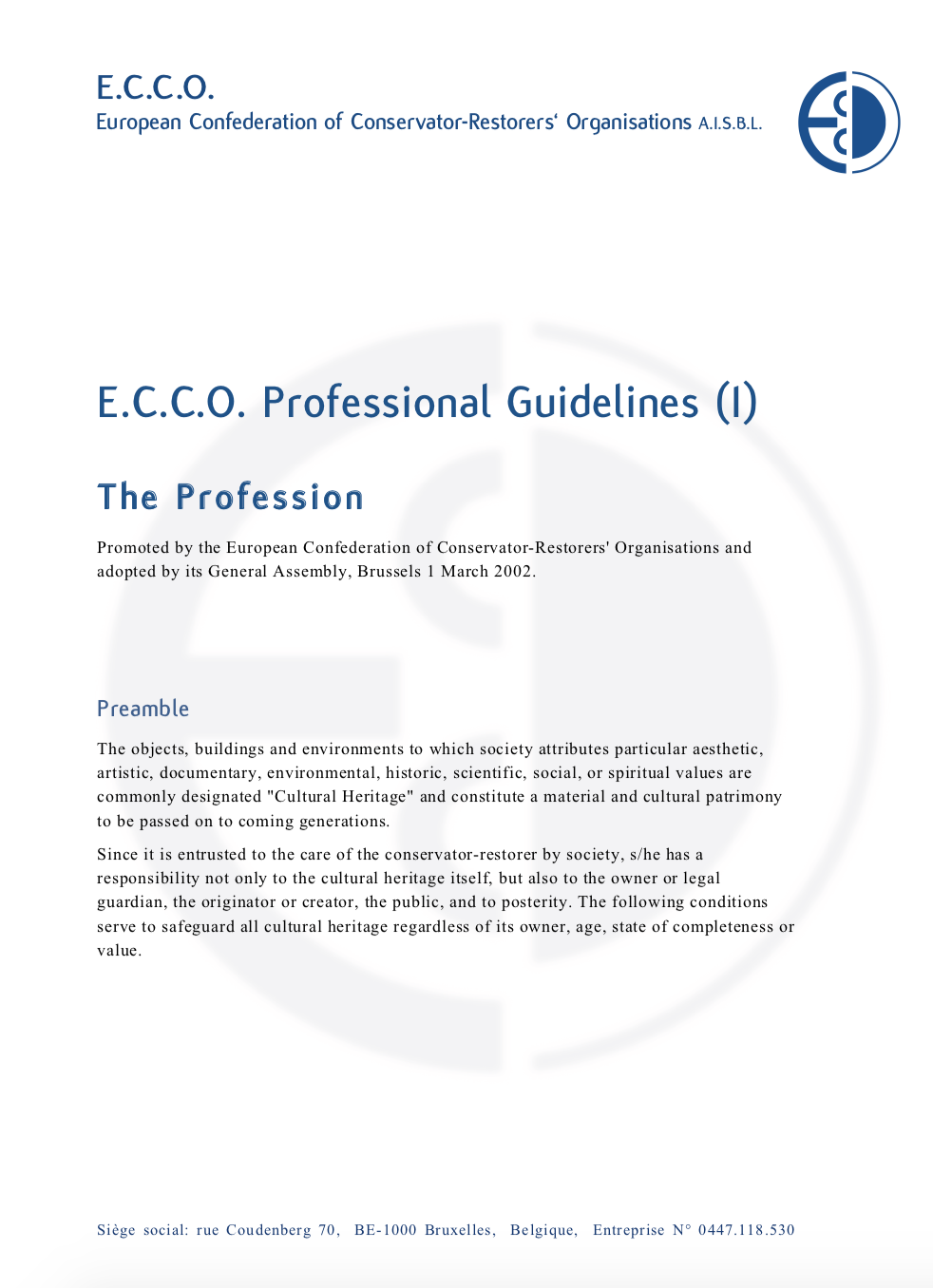 Cette discipline regroupe des interventions bien spécifiques de sauvegarde d’un objet ou d’un monument dans le respect de sa signification à la fois culturelle, historique, esthétique, éthique et artistique. L’objectif d’une intervention de conservation-restauration n’est pas de remettre les biens culturels « à neuf », mais bien de prolonger leur durée de vie dans ce qu’ils représentent comme liens entre les époques et les générations.
